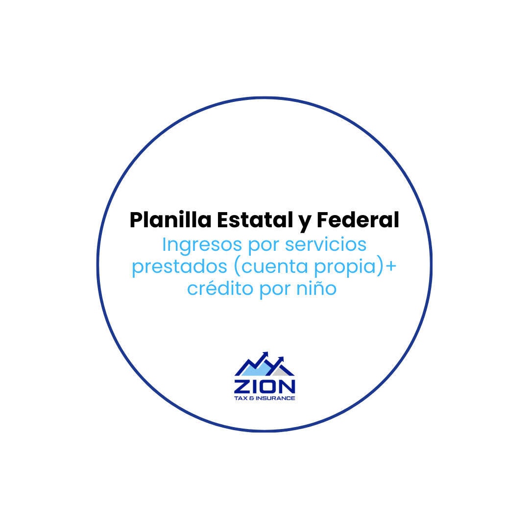 Servicio de preparación de planilla estatal con ingresos por Servicios Prestados, Servicios Profesionales o Cuenta Propia + el crédito por niño.